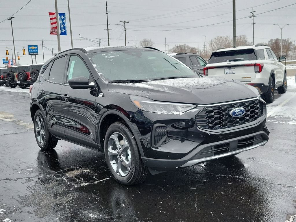 2026 Ford Escape ST-Line AWD â" Battle Creek MI's best price on a sporty, efficient compact SUV. This Ford Escape pairs a peppy 3-cylinder 1.5L gasoline engine with all-wheel drive for confident handling in Michigan weather and excellent fuel economy for daily commutes or weekend Ford escapes. The ST-Line design combines athletic styling with practical SUV versatility: sharp exterior cues, sporty interior touches, and a comfortable cabin built for drivers who want performance and refinement. Inside, enjoy a heated steering wheel for chilly mornings, automatic climate control for personalized comfort, and a back-up camera that makes parking and tight maneuvers simple and safe. Remote start adds convenience on cold or hot days, while hands-free Bluetooth keeps calls and music connected without distraction. These modern features, paired with responsive AWD traction, make the Ford Escape ST-Line a smart choice for Battle Creek residents who need capability and everyday comfort. This vehicle is located in Battle Creek MI and is offered at the best price in the area â" exceptional value for a 2026 model with premium tech and drivability. Whether you're navigating city streets or northern roads, the Ford Escape ST-Line AWD delivers a balanced blend of efficiency, style, and functionality. Contact us today to schedule a test drive and experience why this 2026 Ford Escape ST-Line is a top pick for Battle Creek drivers seeking performance and value.